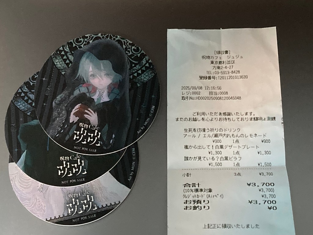 俺もありがとう!さ、呪物カフェジュジュに行って自分の身の周りに何か異変が起きたかというと、まずレシートの文字化けにはやられた…手が込んでますな