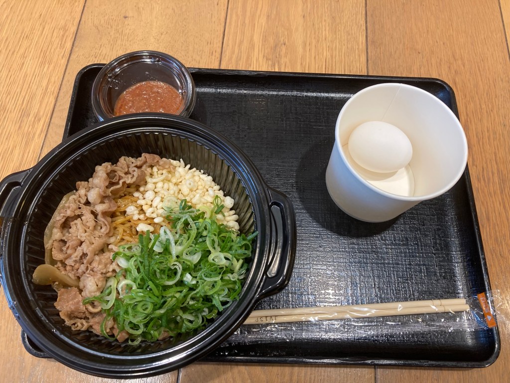 牛丼屋のまぜそばを食べて思ったのはやっぱ牛丼って美味しいんだなと…味付けや食感等のバランスも良くて、味の変化に七味や紅しょうがを気分で添えて